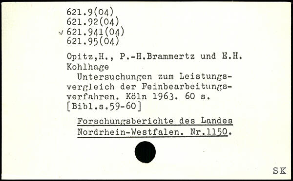 Opitz,H., P.-H.Brammertz und E.H. Kohlhage Untersuchungen zum Leistungsvergleich der Feinbearbeitungsverfahren. Köln 19^3.
