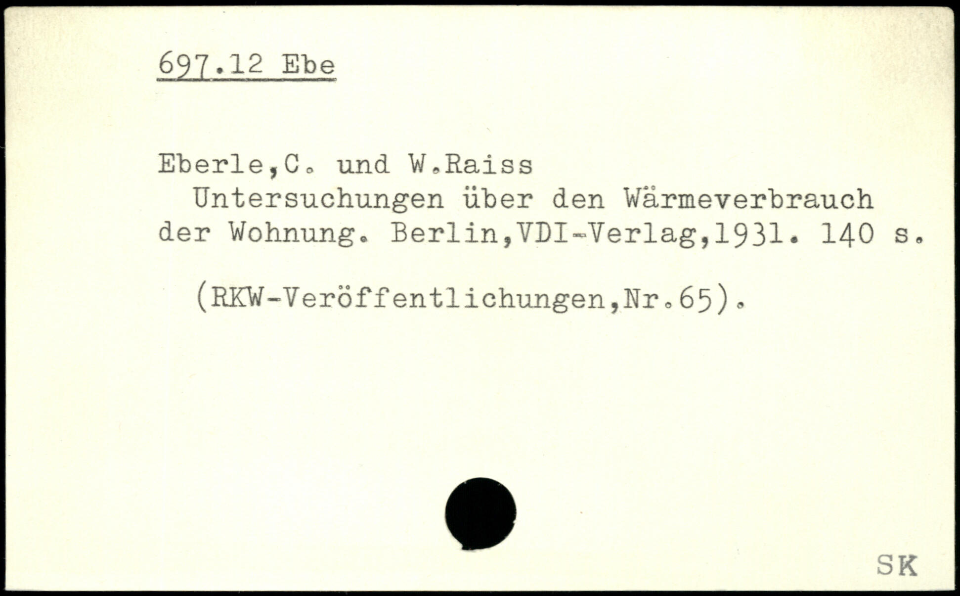 Eberle,C0 und W,Raiss Untersuchungen über den Wärmeverbrauch der Wohnung.