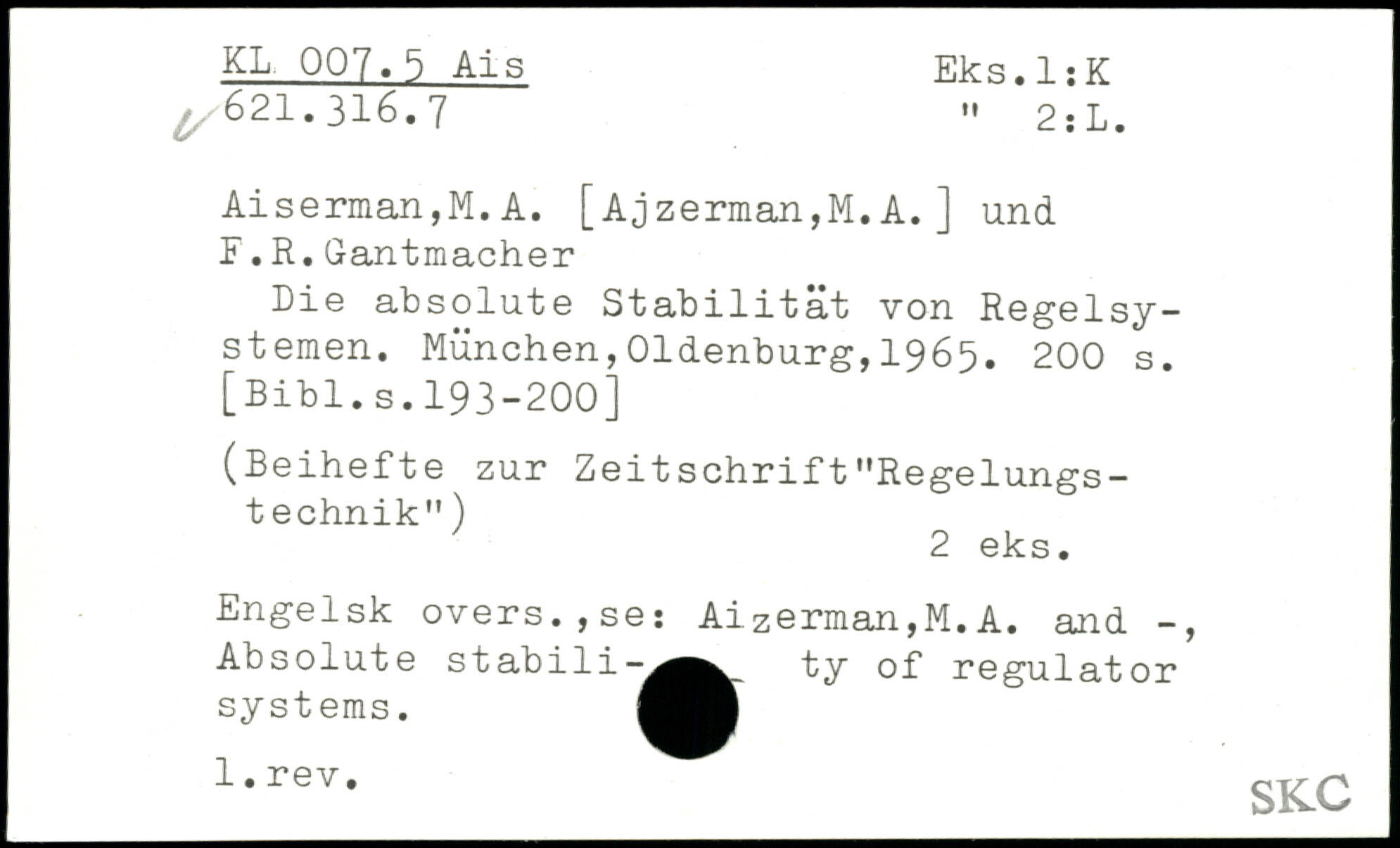 Die absolute Stabilität von Regelsystemen.