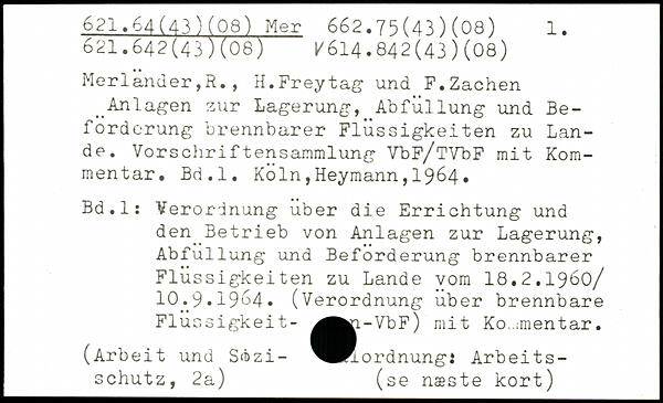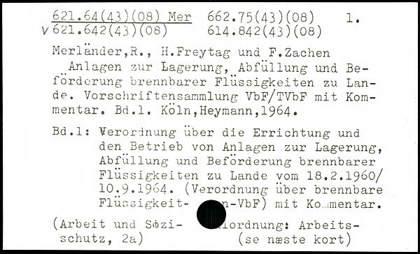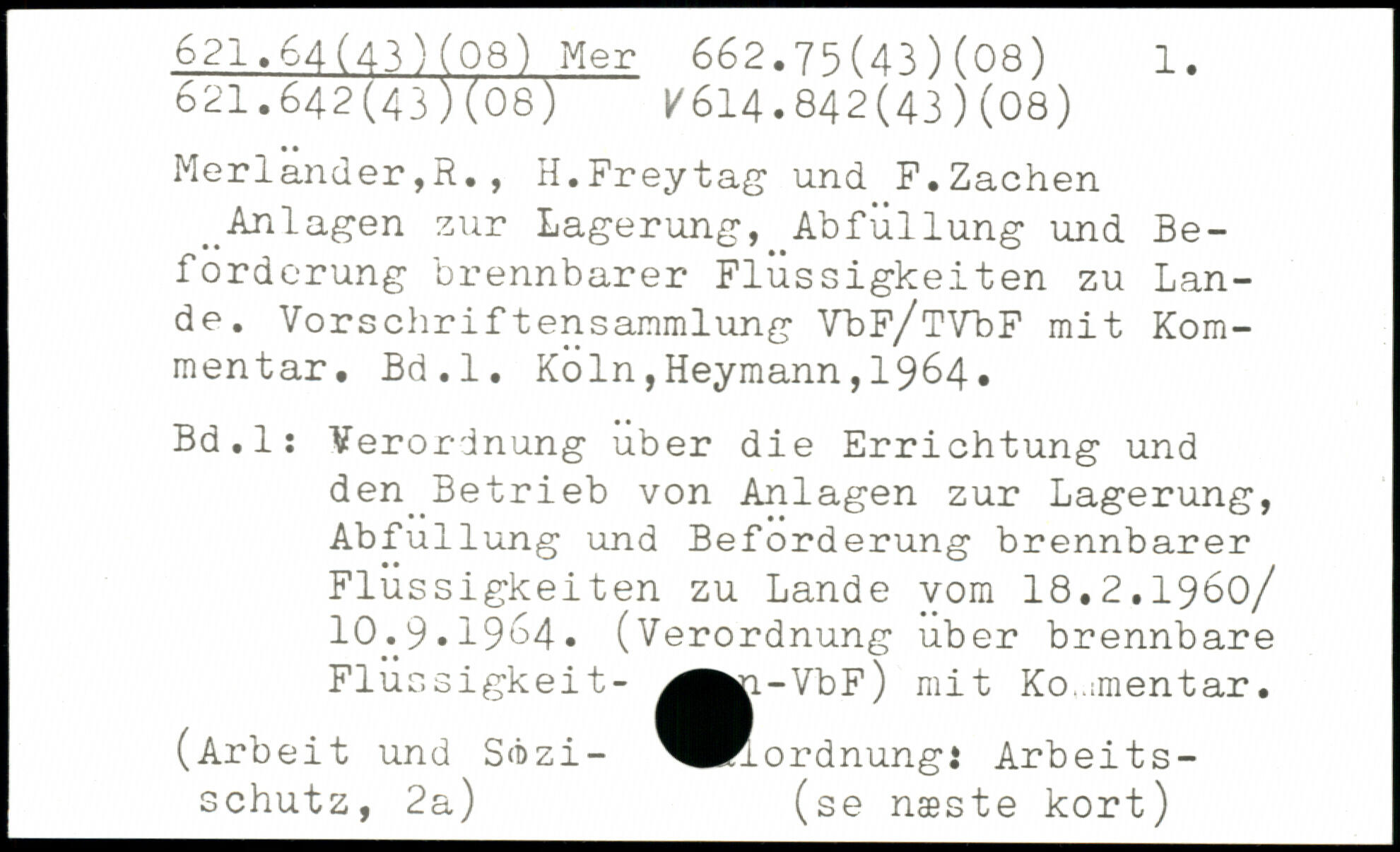 Merlander,R., H.Freytag und F.Zachen ^Anlagen zur Lagerung, Abfüllung und Beförderung brennbarer Flüssigkeiten zu Lande. Vorschriftensammlung VbF/lVbF mit Kommentar.