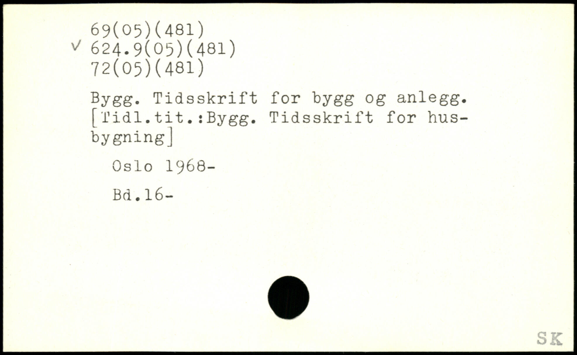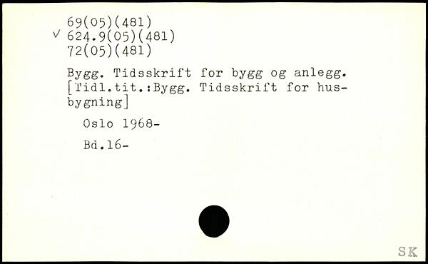 Bygg. Tidsskrift for bygg og anlegg. [Tidl.tit.:Bygg. Tidsskrift for hus-bygningj Oslo 1968-