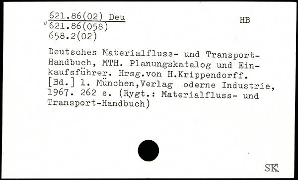 Deutsches Materialfluss- und Transport-Handbuch, MTH. Planungskatalog und Ein-kaufsfuhrer. Hrsg.von H.Krippendorff. [Bd.J 1.