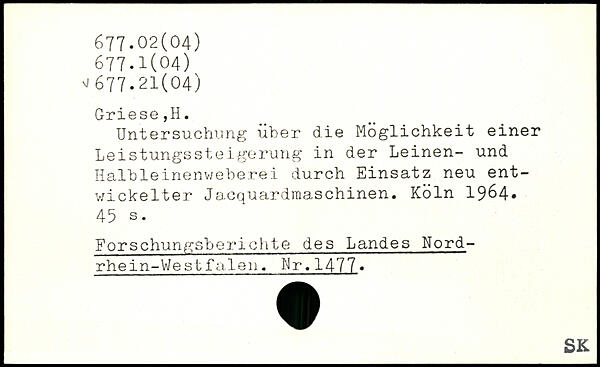 Untersuchung über die Möglichkeit einer Leistungssteigerung in der Leinen- und Halbleinenweberei durch Einsatz neu entwickelter Jacquardmaschinen.