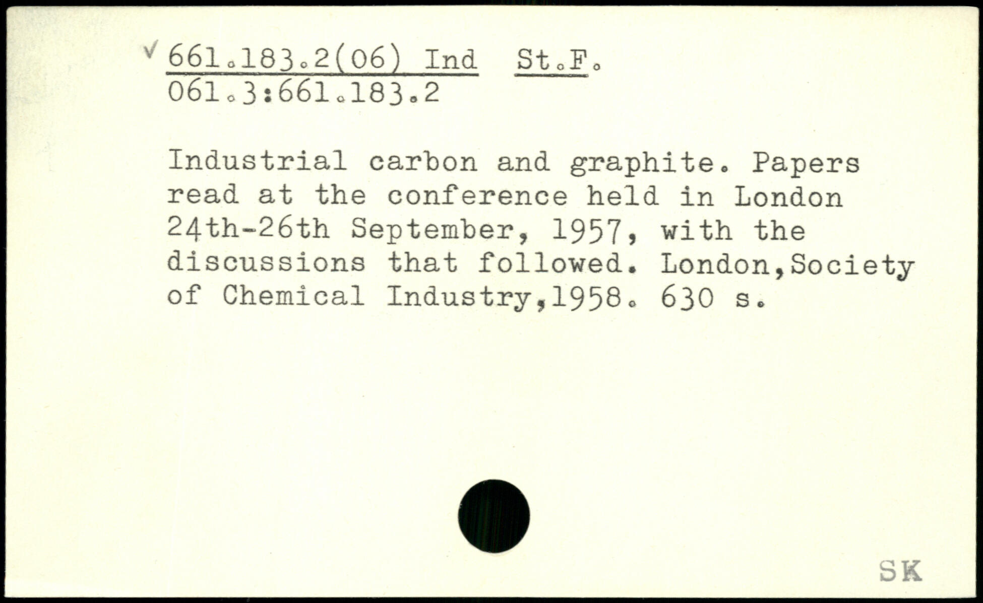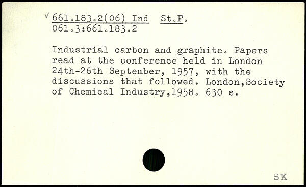Industrial carbon and graphite. Papers read at the conference held in London 24th-26th September, 1957, with the discussions that followed.