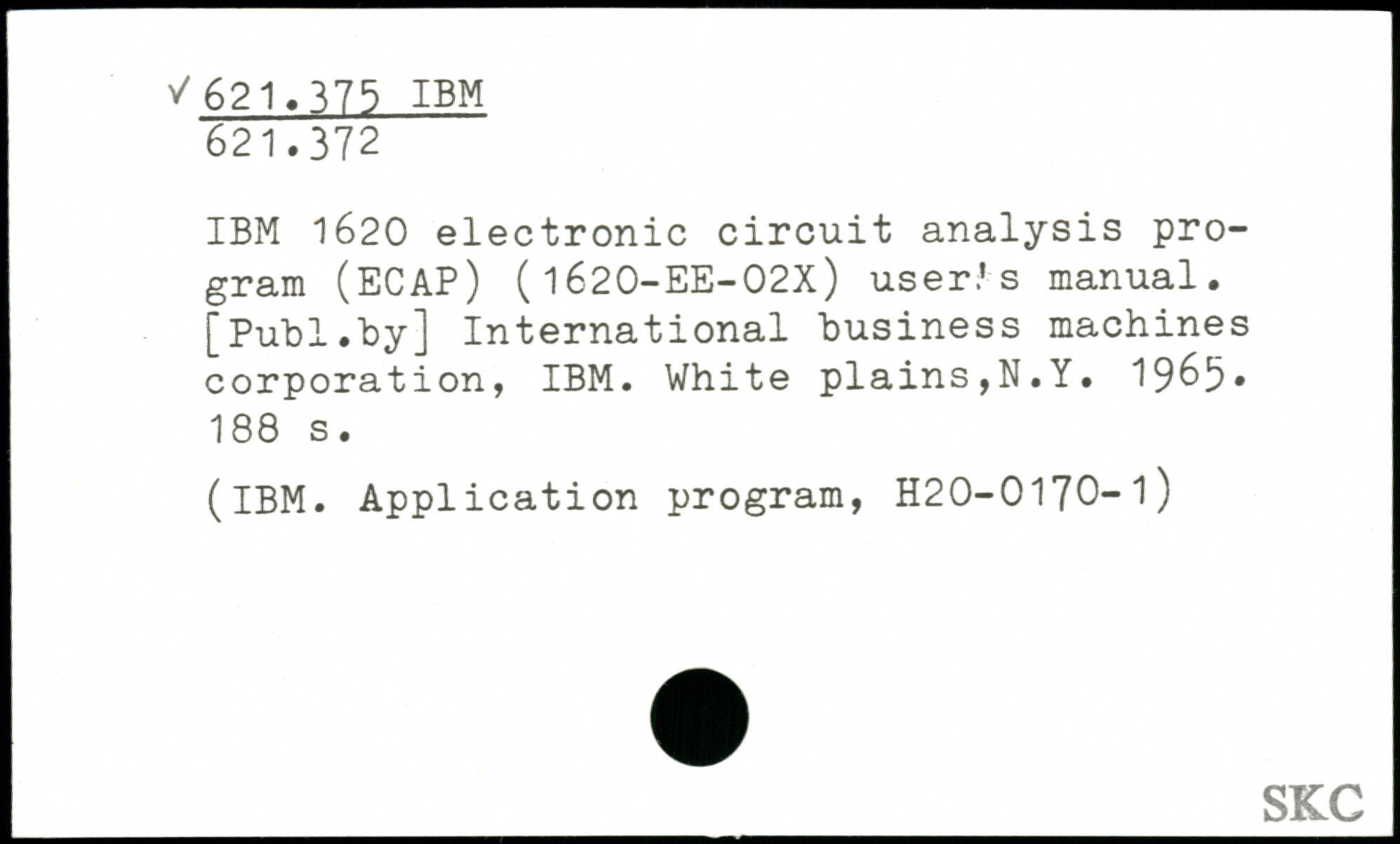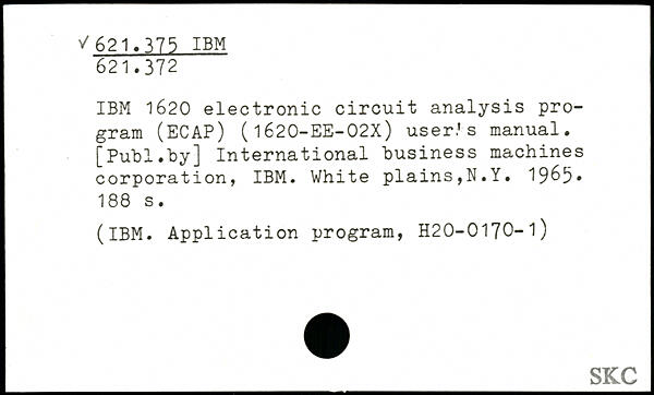 IBM 1620 electronic circuit analysis program (ECAP) ( 1620-EE-02X) user.' s manual.