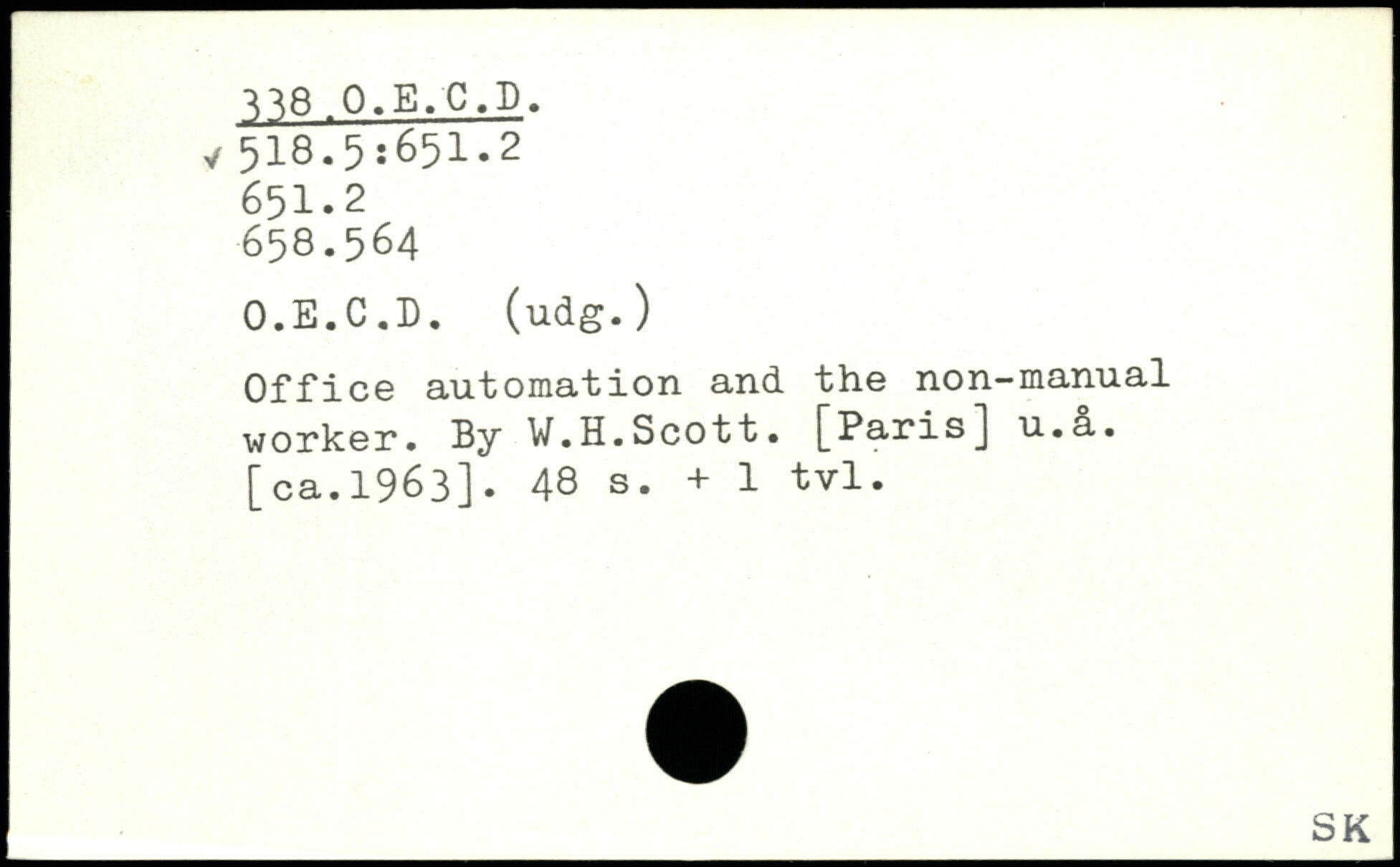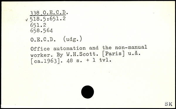 Office automation and the non-manual worker. By W.H.Scott. ^Paris] u.a.