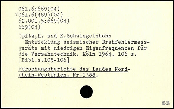 )pitz,II. und K.Schwiegelshohn Entwicklung seismischer Drehfehlermess-jeräte mit niedrigen Eigenfrequenzen für die Verzahntechnik.