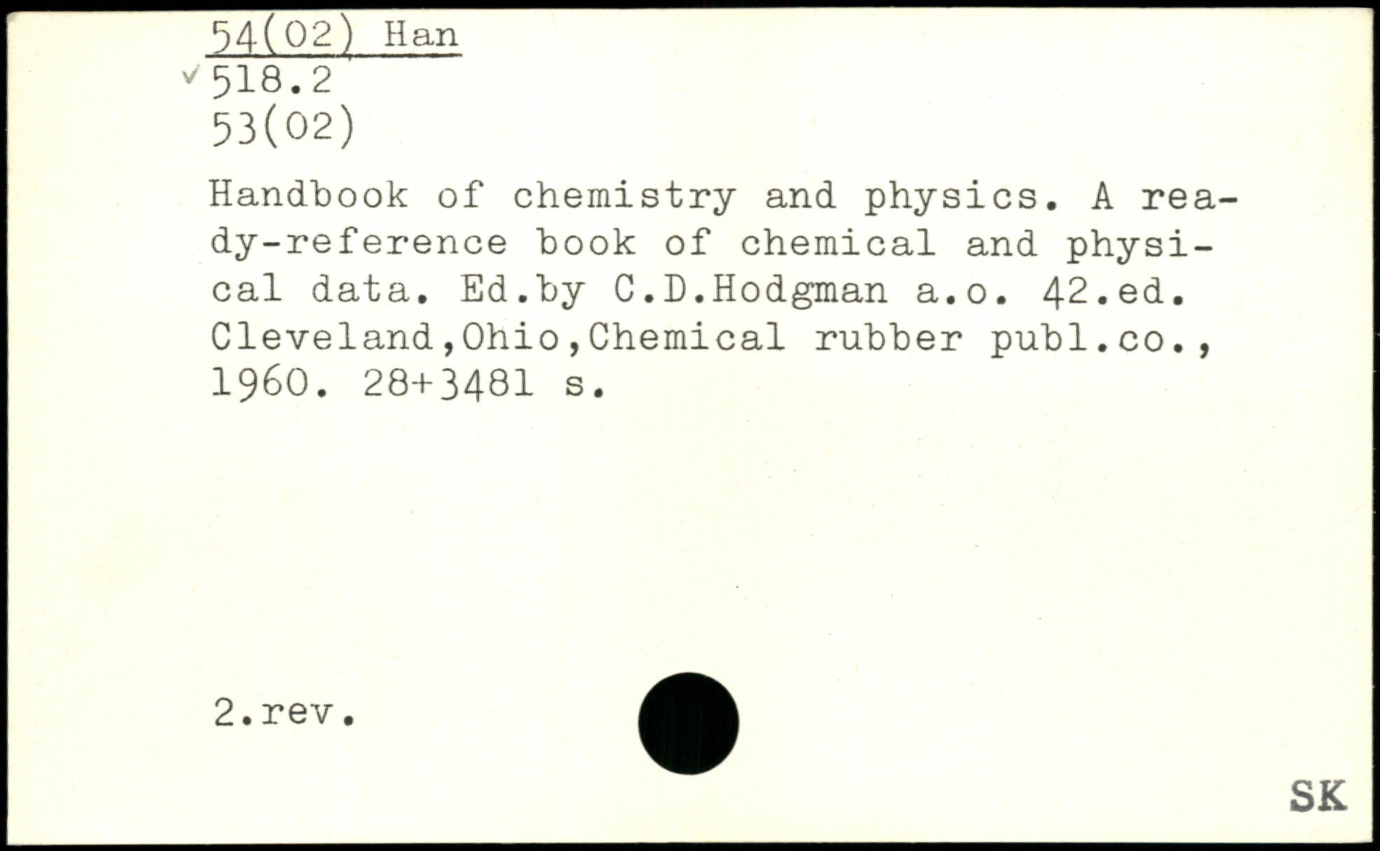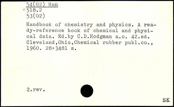 Handbook of chemistry and physics. A ready-reference hook of chemical and physical data. Ed.by C.D.Hodgman a.o.