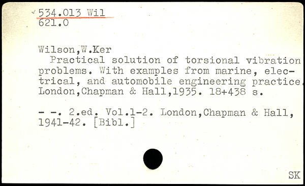Wilson ,W.Ker Practical solution of torsional vibration problems. With examples from marine, electrical, and automobile engineering practice