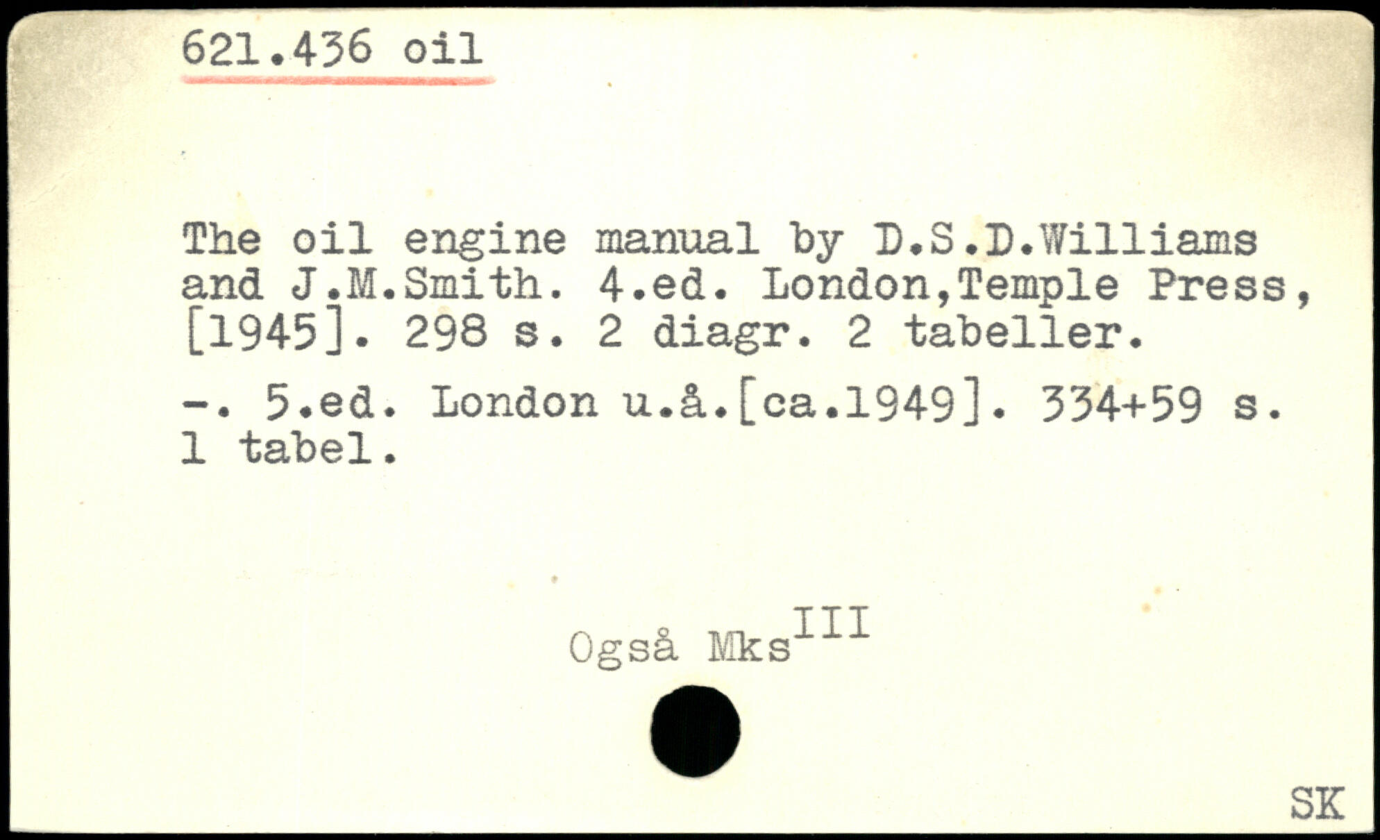 The oil engine manual by D.S .D.W1111ams and J.M.Smith.