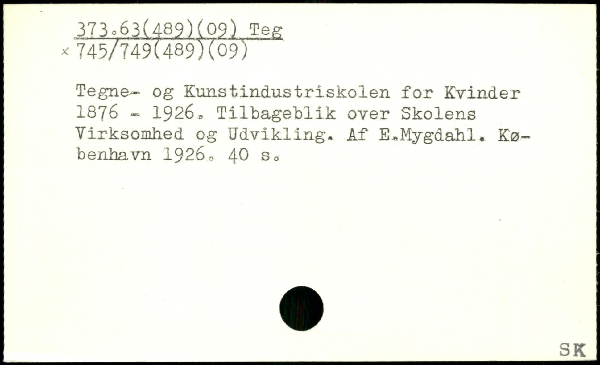Tegne- og Kunstindustriskolen for Kvinder 1876 - 1926, Tilbageblik over Skolens Virksomhed og Udvikling. Af E.Mygdahl.