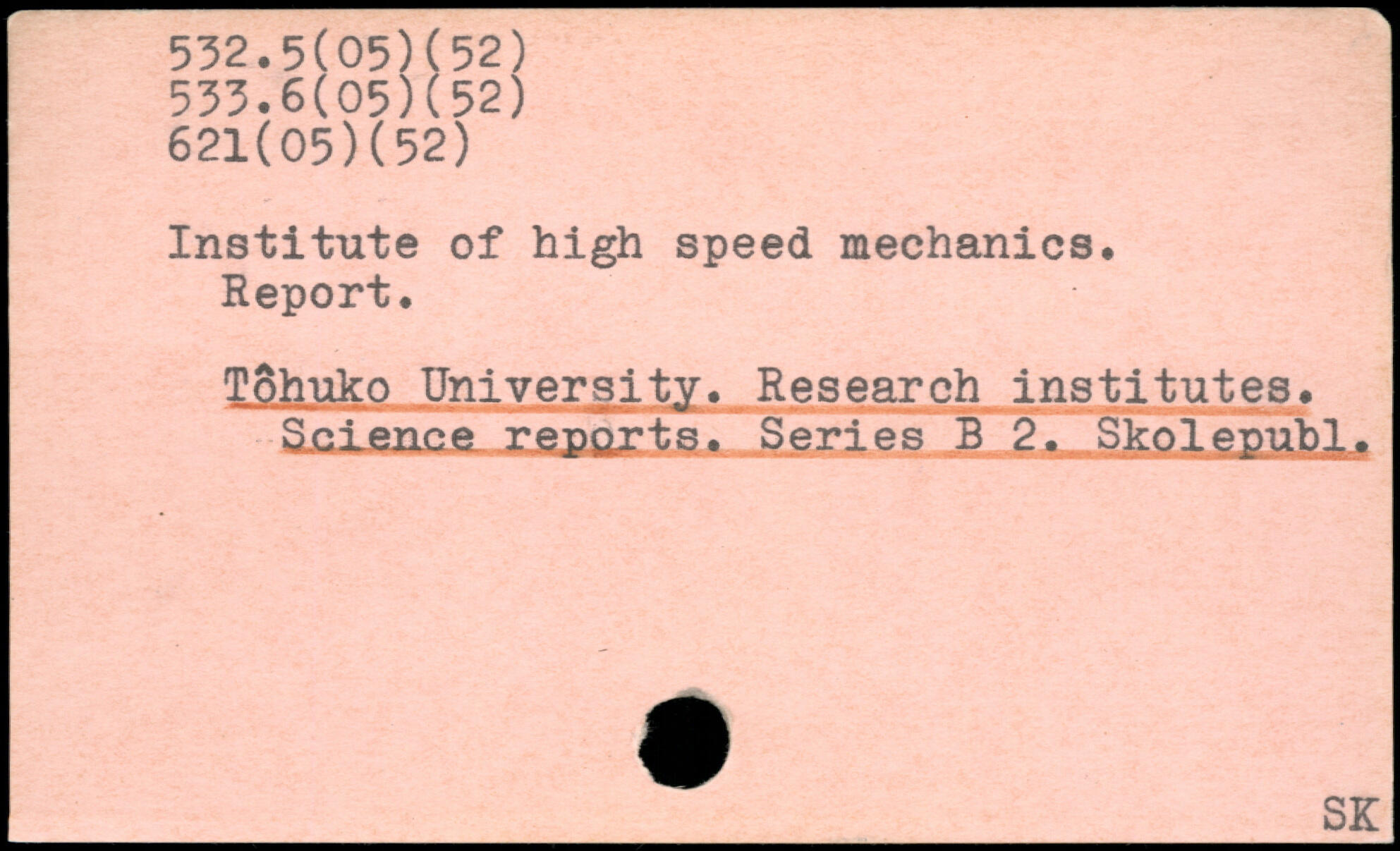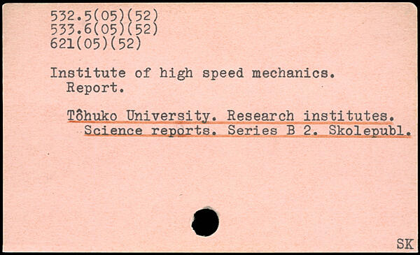 Institute of high speed mechanics. Report, Tohuko University. Research institutes. Science reports. Series B 2. Skolepubl.