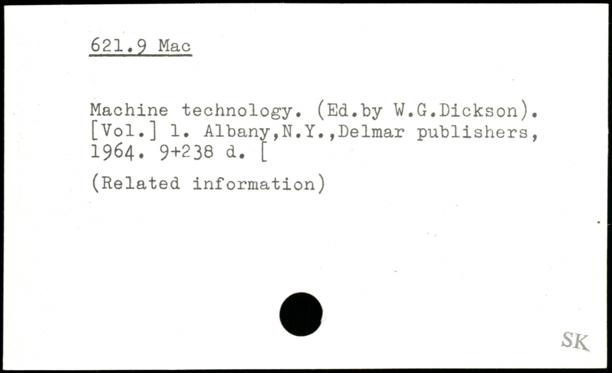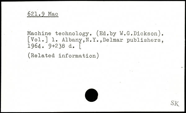 Machine technology. (Ed.by W.G.Dickson). [Vol.] 1.