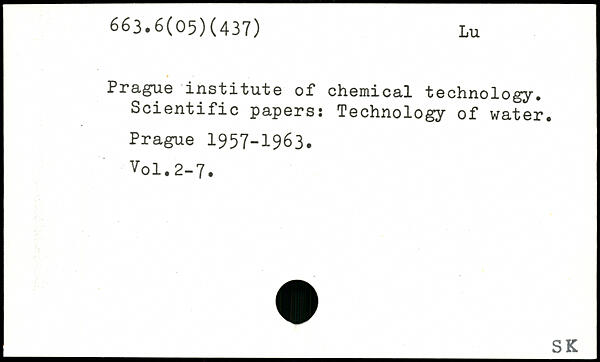 Prague institute of chemical technology. Scientific papers: Technology of water.