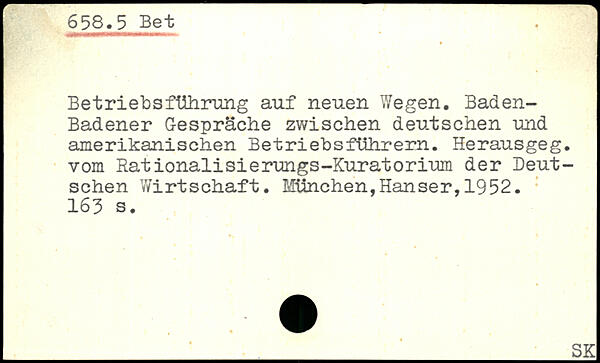 Betriebsführung auf neuen Wegen. Baden-Badener Gespräche zwischen deutschen und amerikanischen Betriebsfährern. Herausgeg. vom Rationalisierungs-Kuratorium der Deutschen Wirtschaft.