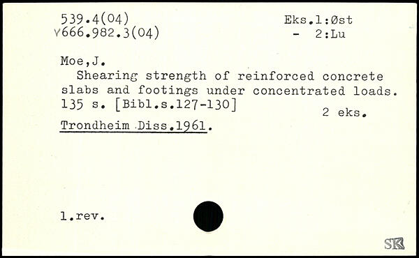 Shearing strength of reinforced concrete slabs and footings under concentrated loads.