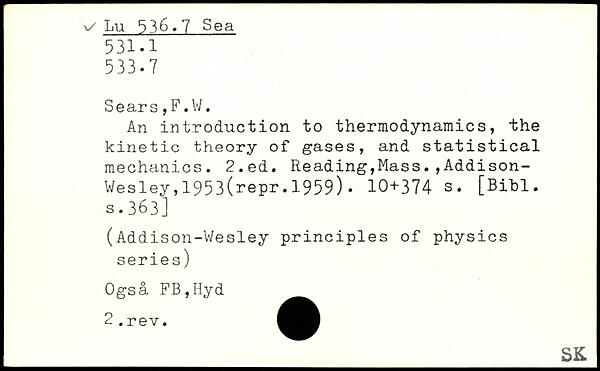 An introduction to thermodynamics, the kinetic theory of gases, and statistical mechanics.