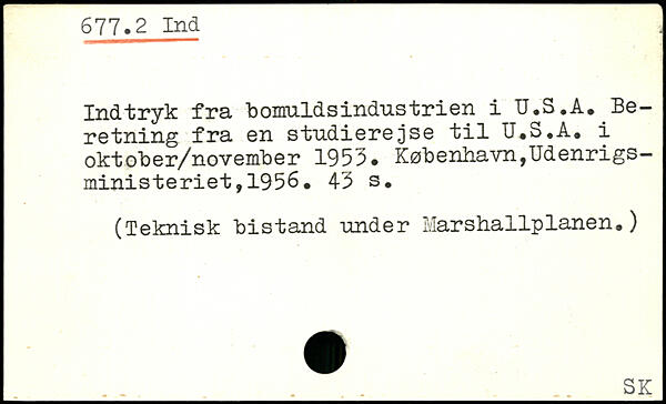 Indtryk fra bomulds industri en i TJ.S.A. Beretning fra en studierejse til U,S,A. i oktober/november 1953.
