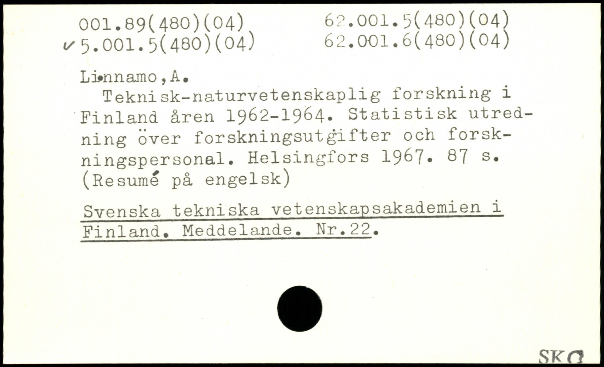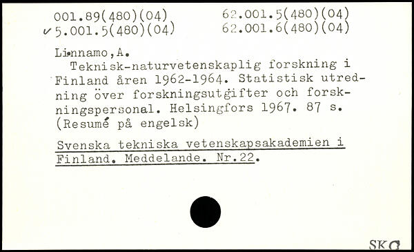 Teknisk-naturvetenskaplig forskning i Finland åren 1962-1964. Statistisk utredning över forskningsutgifter och forskningspersonal.