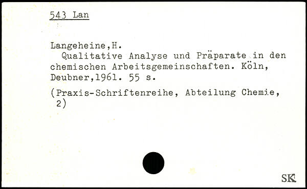 Qualitative Analyse und Präparate in den chemischen Arbeitsgemeinschaften.