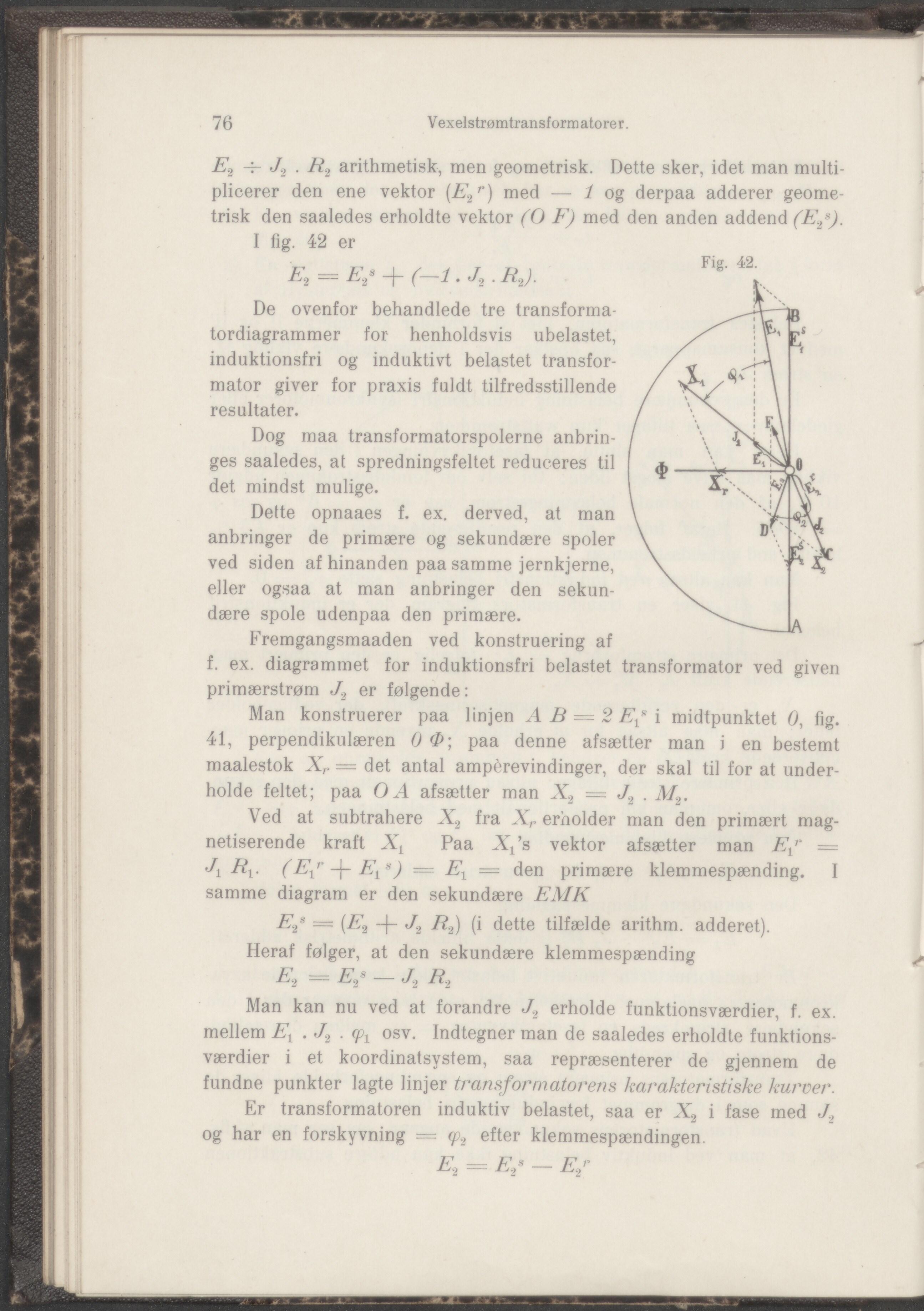 Er transformatoren induktiv belastet, saa er X2 i fase med J„