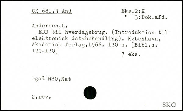 EDB til hverdagsbrug. (Introduktion til elektronisk databehandling).