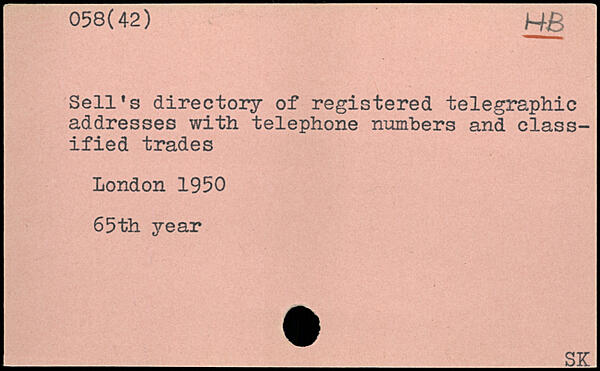 Sell’s directory of registered telegraphic addresses with telephone numbers and classified trades