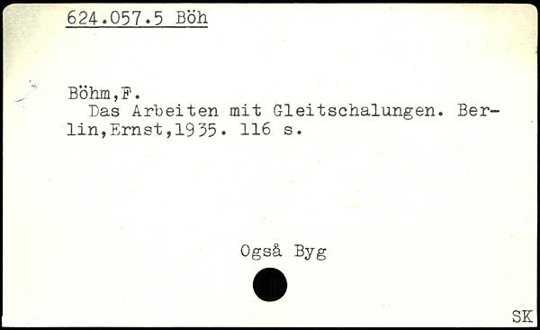 Das Arbeiten mit Gleitschalungen, Ber-lin,Emst,1955. 116 s. Også Byg