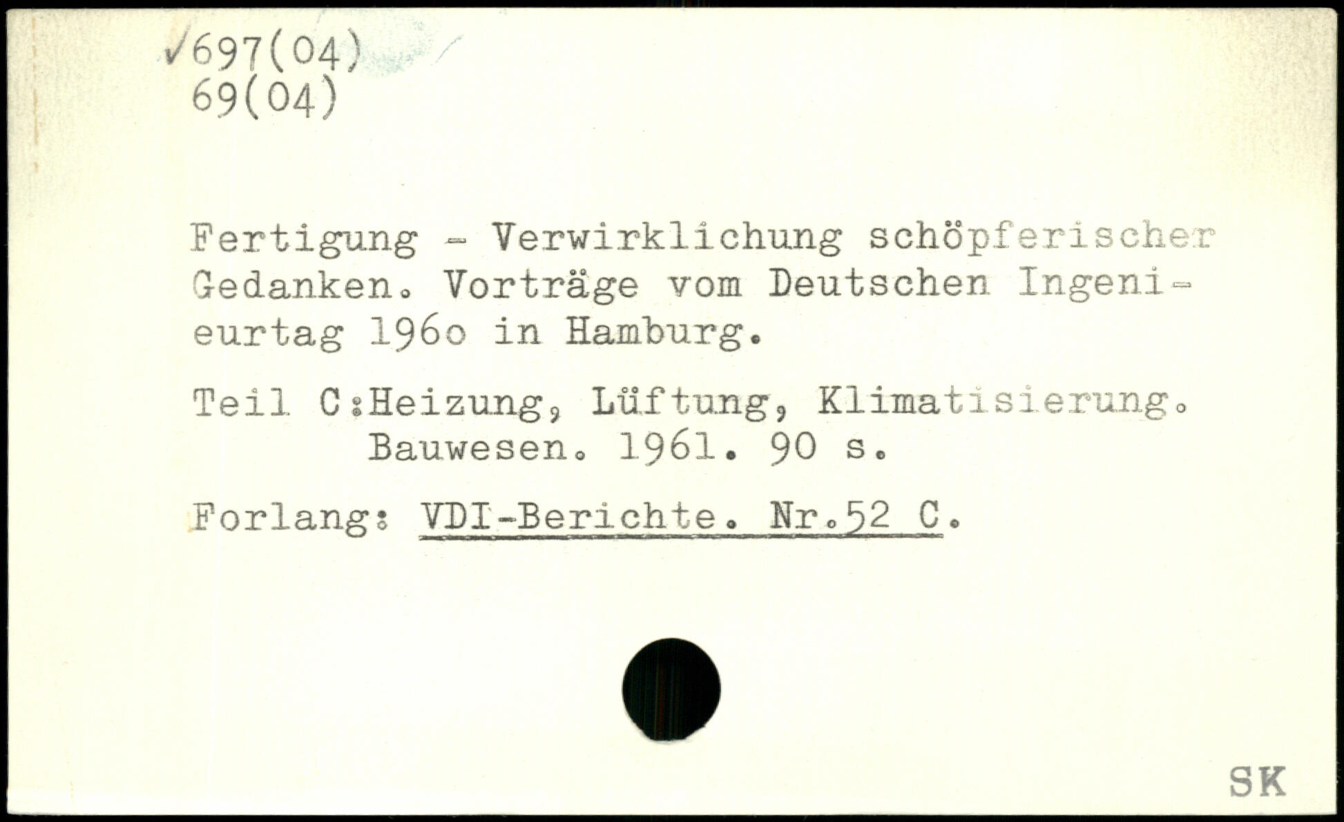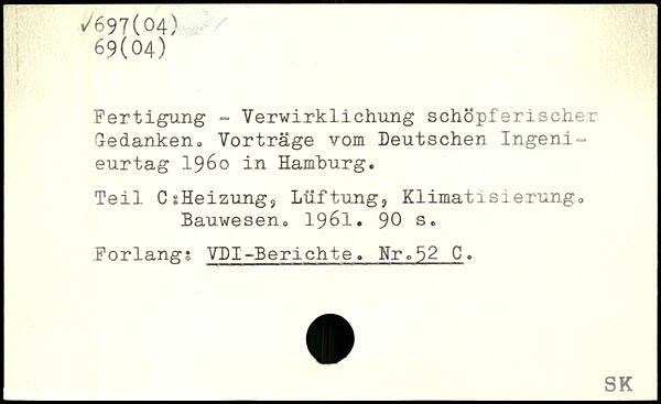 Fertigung - Verwirklichung schöpferischer Gedanken, Vorträge vom Deutschen Ingeni-eurtag 1960 in Hamburg. Teil CsHeizungj Lüftung?