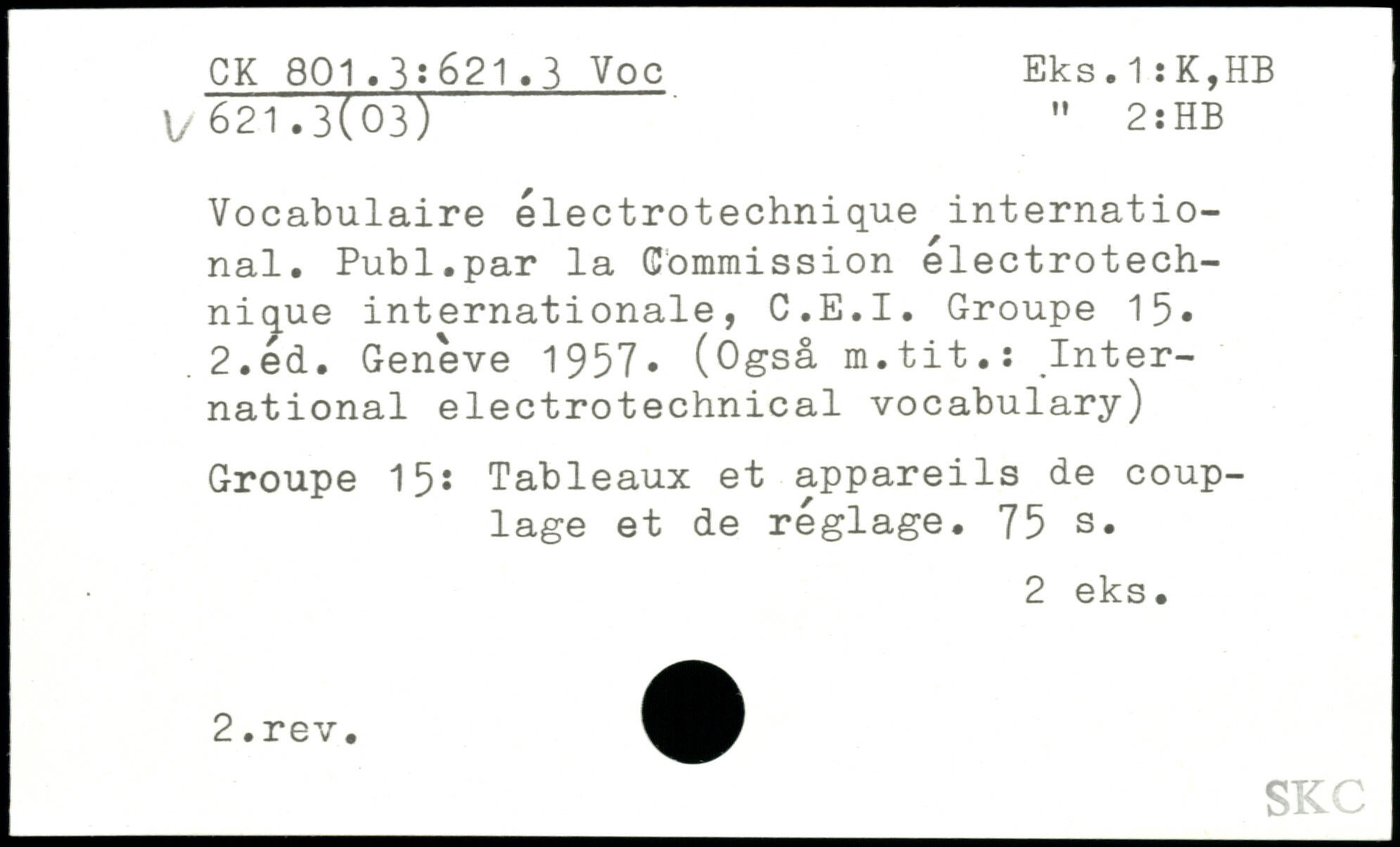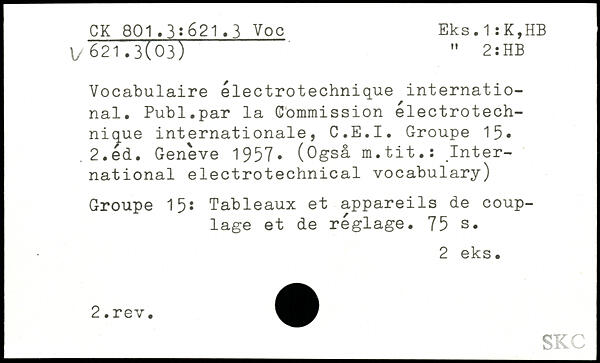 Vocabulaire électrotechnique international. Publ.par la Commission électrotech-nique internationale, C.E.I. Groupe 15,.