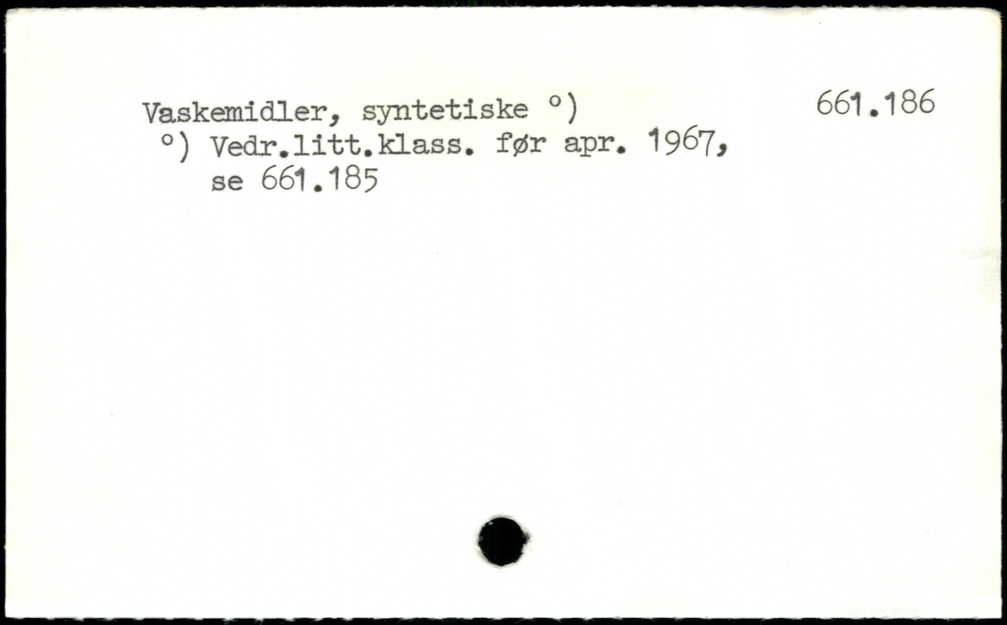 Vaskemidler, syntetiske .) 661.186 .) Vedr.litt.klass. før apr. 1967> se 661.185