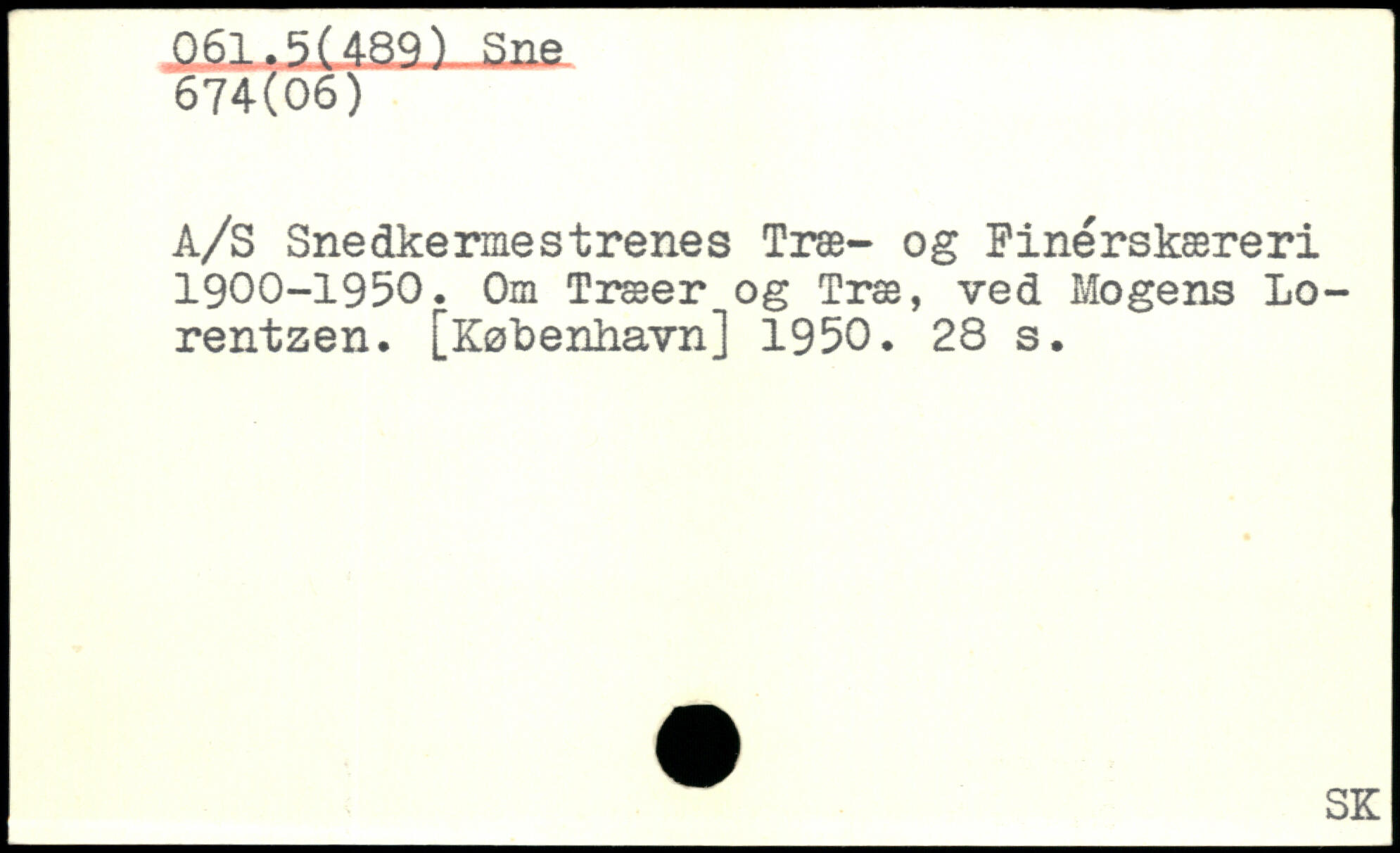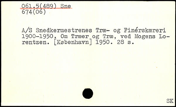 A/S Snedkermestrenes Træ- og Finérskæreri 1900-1950. Om Træer og Træ, ved Mogens Lorentzen.
