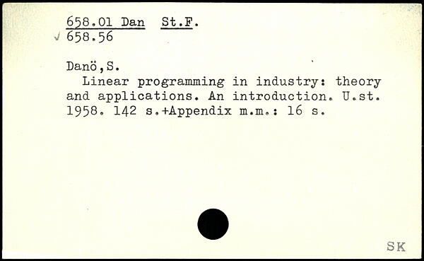Linear programming in industry. theory and applications. An introduction. U.st. 1958.
