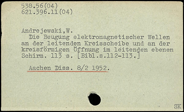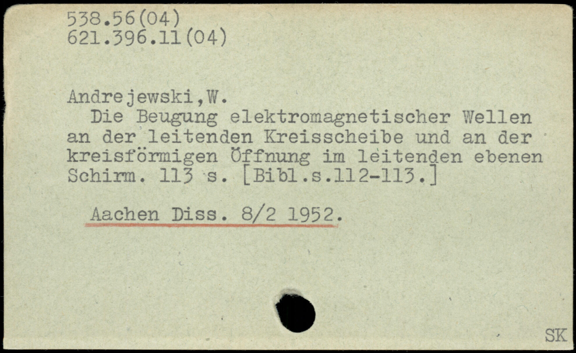 Die Beugung elektromagnetischer Wellen an dergleitenden Kreisscheibe und an der kreisförmigen Öffnung im leitenden ebenen Schirm.