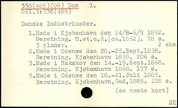 Danske Industrimøder. 1. Møde i K.jøbenhavn den 24/8-6/9 1852. Beretning. U.st.n. å.[ca.1852].