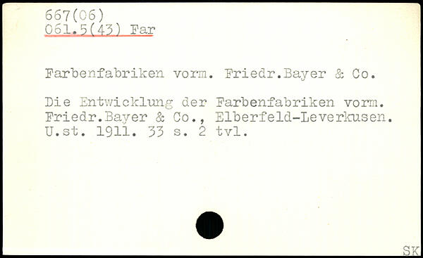 Farbenfabriken vorm. Friedr.Bayer & Co. Die Entwicklung der Farbenfabriken vorm. Friedr.Bayer & Co., Elberfeld-Leverkusen. U.st. 1911.