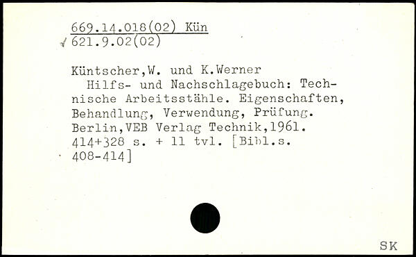 Hilfs- und Nachschlagebuch: Technische Arbeitsstähle. Eigenschaften, Behandlung, Verwendung, Prüfung.