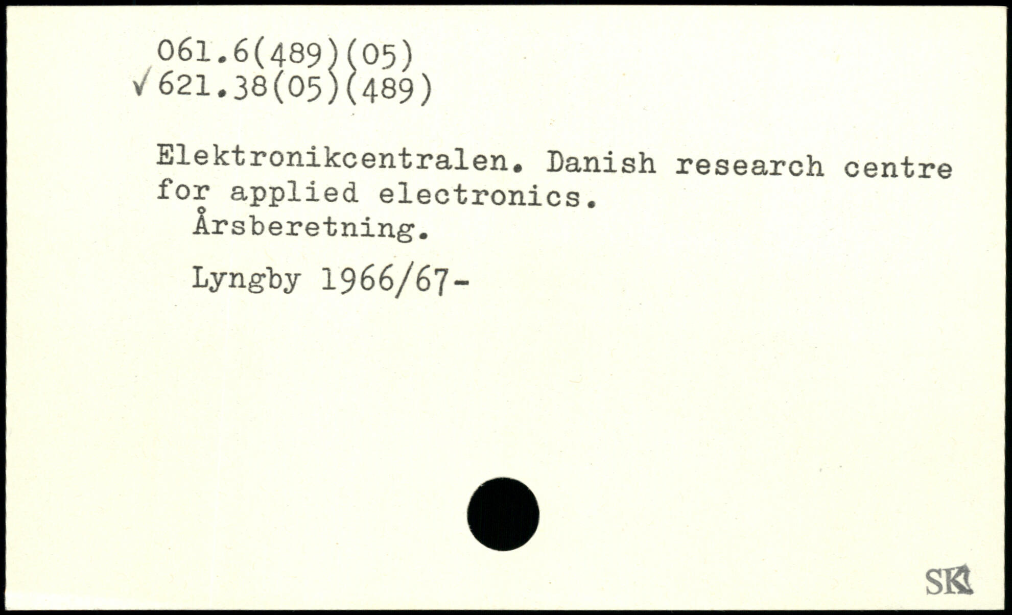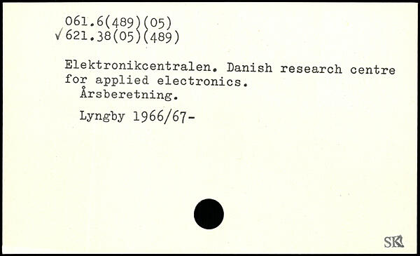 Elektronikcentralen. Danish research centre for applied electronics. Årsberetning. Lyngby 1966/67- sfi