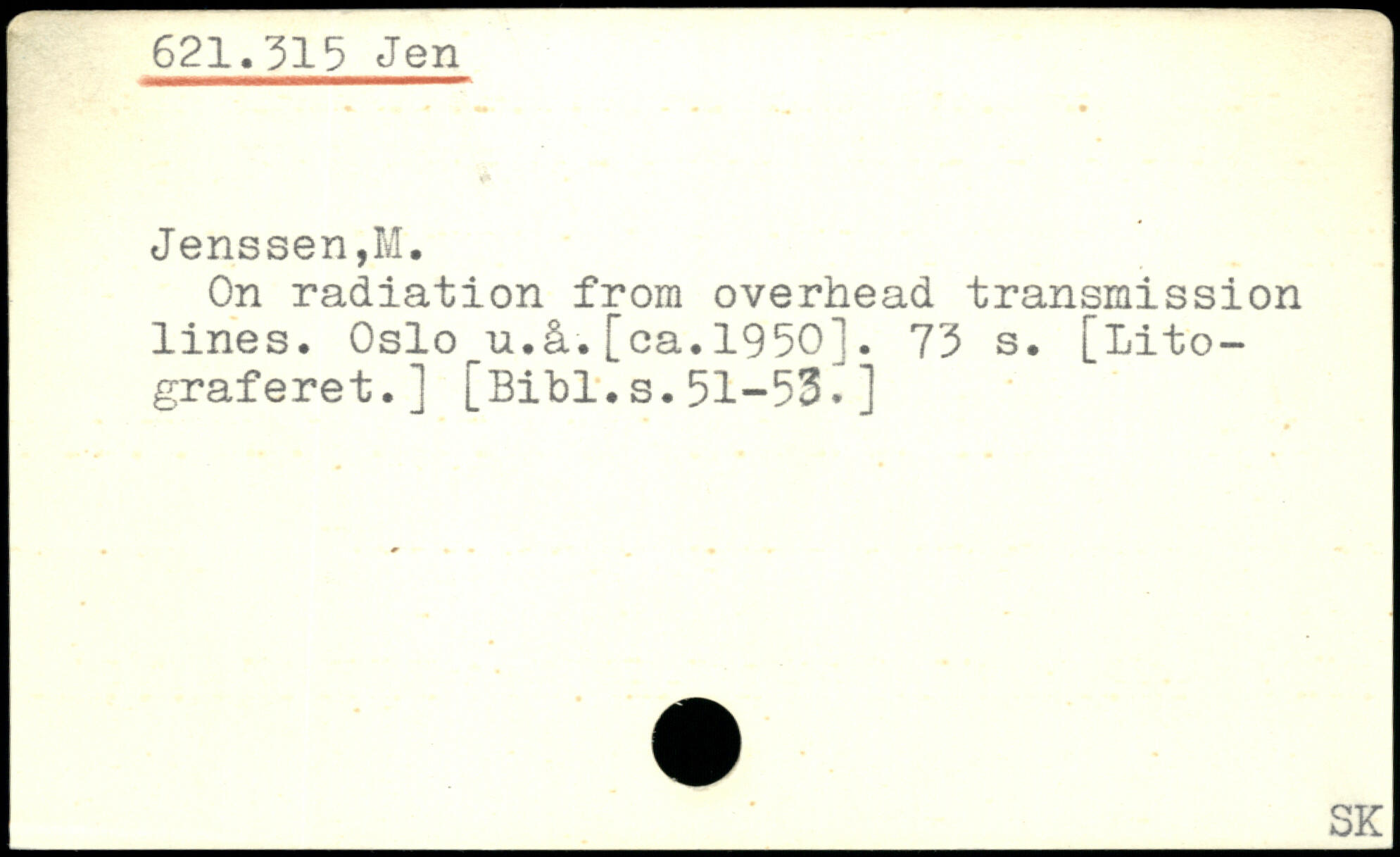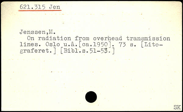 On radiation from overhead transmission lines. Oslo u.å.[ca.1950].