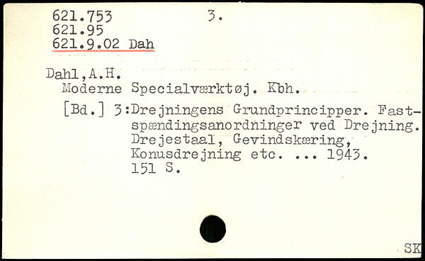 Moderne Specialværktøj. Kbh. [Bd.] 3 :Dre jningens G-rundprincipper. Dast-spændingsanordninger ved Drejning. Drejestaal, Gevindskæring, Konusdrejning etc. ... 1943.