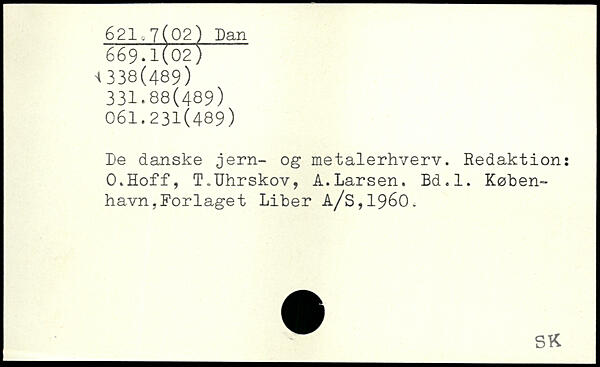 De danske jern- og metalerhverv. Redaktion: O.Hoff, T.Uhrskov, A.Larsen. Bd.l.