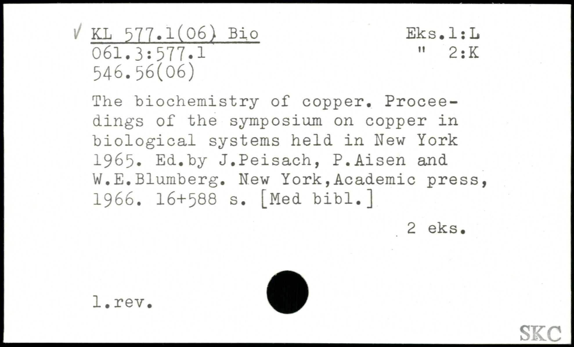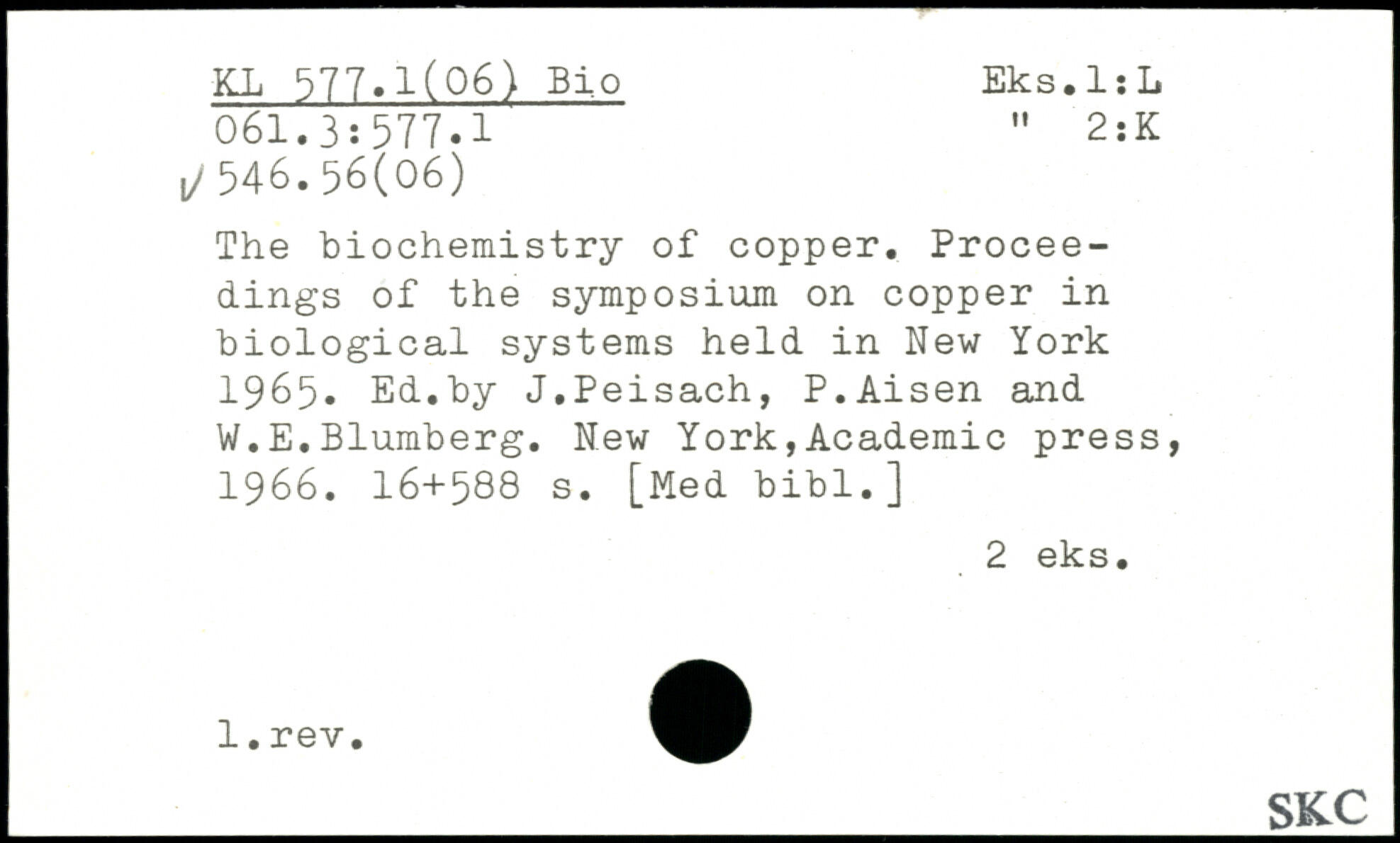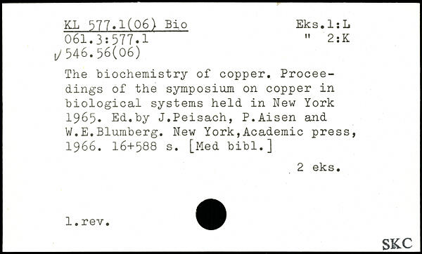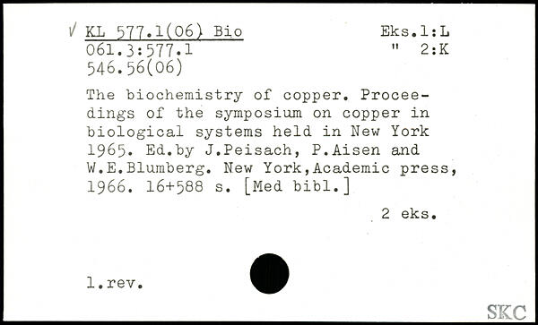 The biochemistry of copper. Proceedings of the symposium on copper in biological systems held in