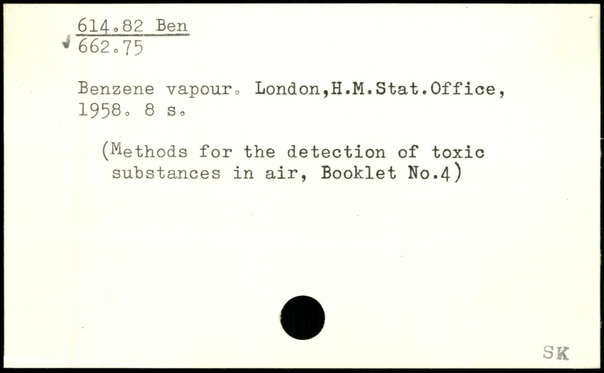 Benzene vapour3 London,H.M.Stat.Office, 19580