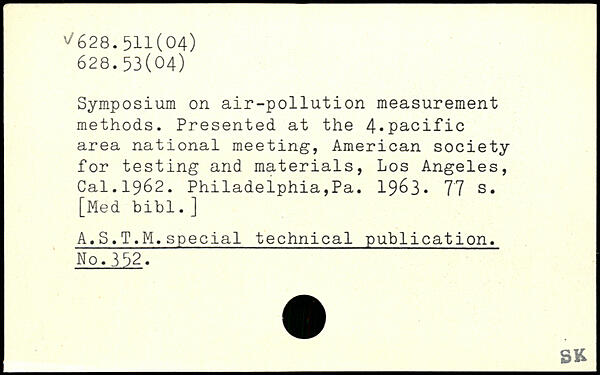 Symposium on air-pollution measurement methods. Presented at the 4,pacific area national meeting, American society for testing and materials, Los Angeles, Cal.1962. Philadelphia,Pa. 1963.