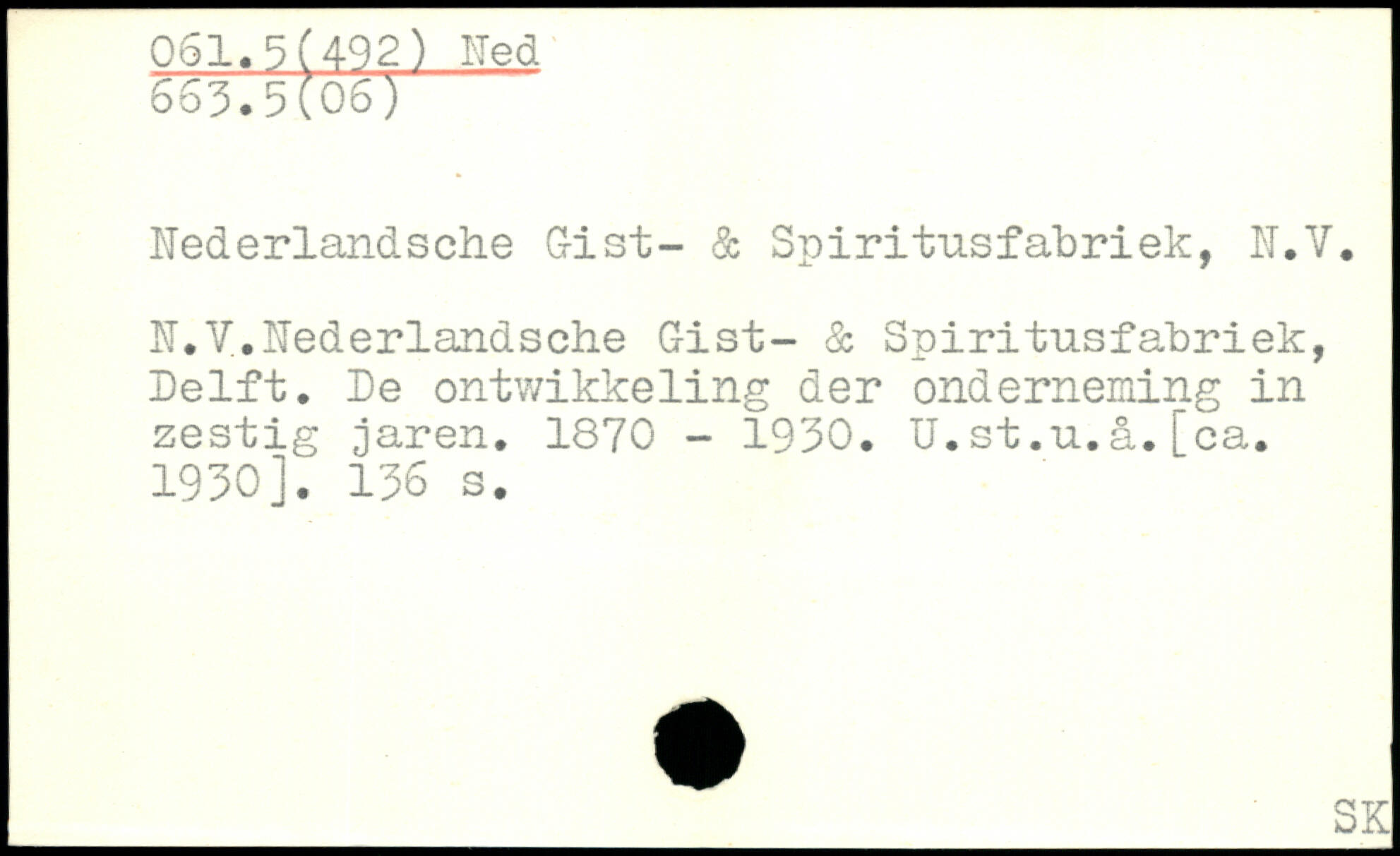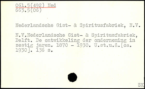 N.Y.Nederlandsche Gist- & Spiritusfabriek, Delft. De ontwikkeling der ondememing in zestig jaren. 1870 - 1930. U.st.u.a.[ca. 1930].
