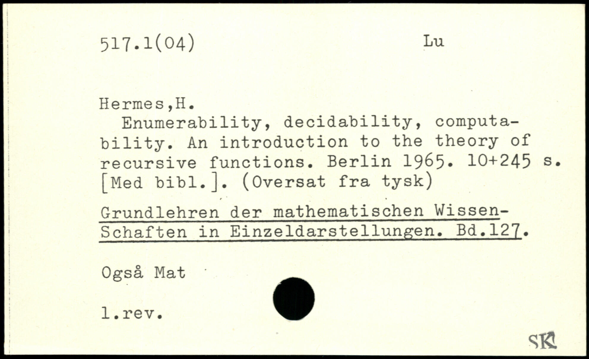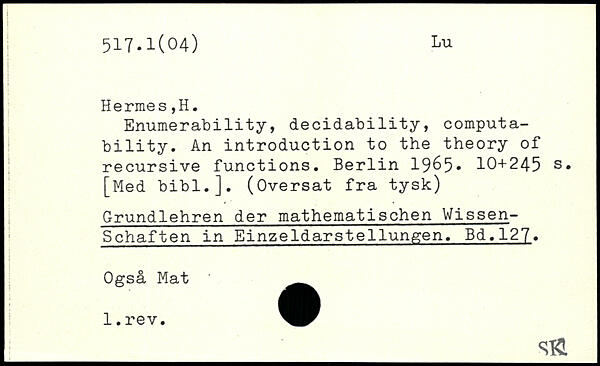 Enumerability, decidability, computability. An introduction to the theory of recursive functions.