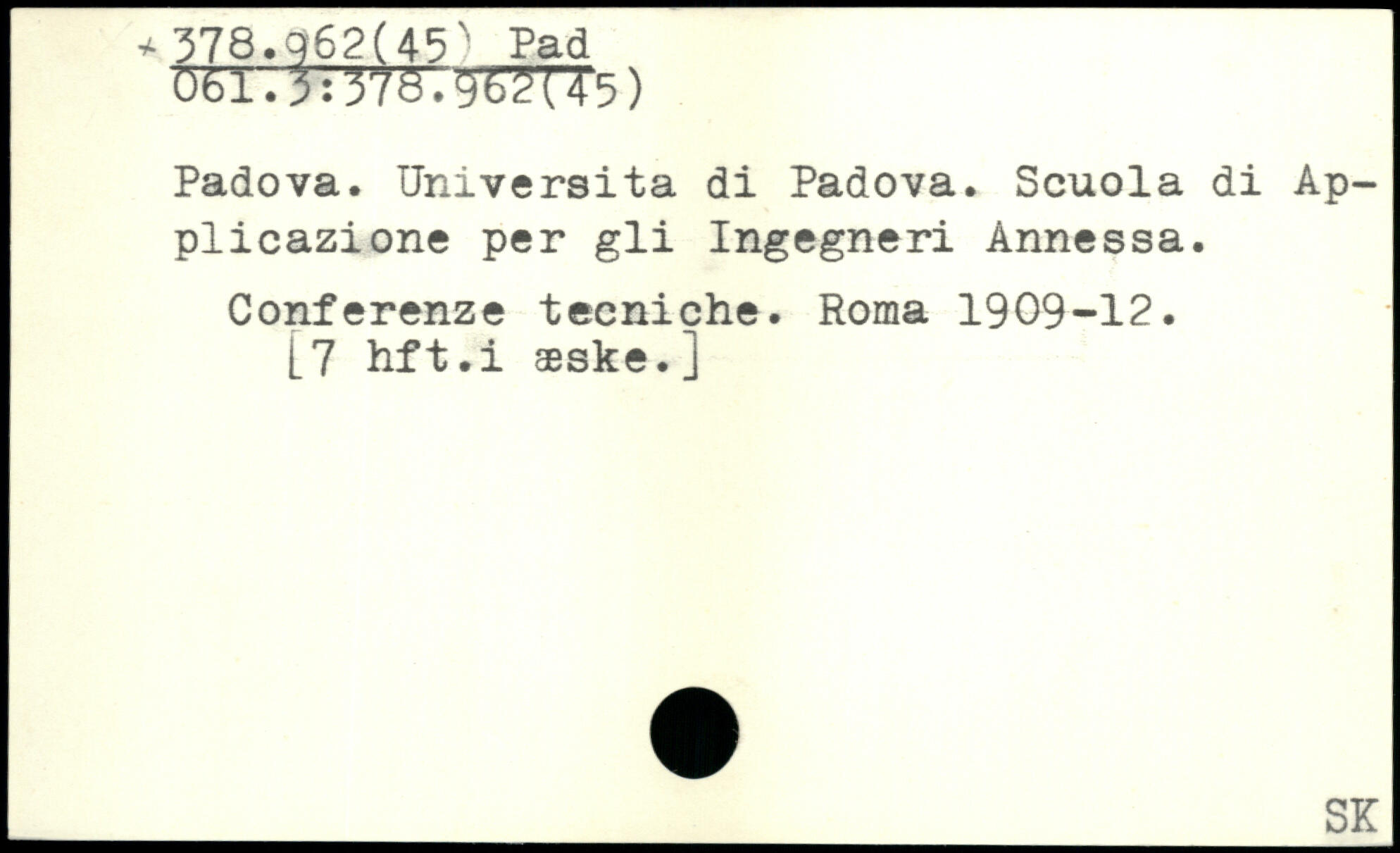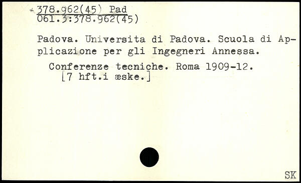 Padova. Universita di Padova. Scuola di Ap-plicazione per gli Ingegneri Annessa. Conferenze tecniche.