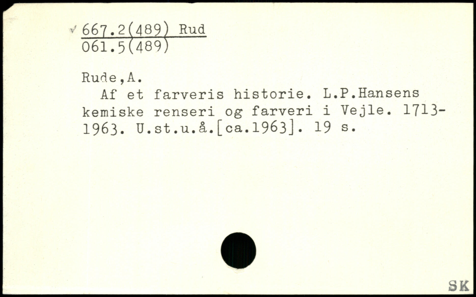 Af et farveris historie. L.P.Hansens kemiske renseri og farveri i Vejle. 1713-1963. U.st.u.å.[ca.1963J.