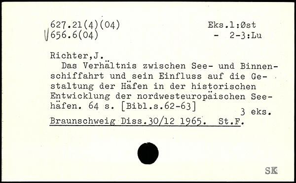 Das Verhältnis zwischen See- und Binnenschiffahrt und sein Einfluss auf die Gestaltung der Hafen in der historischen Entwicklung der nordwesteuropäischen Seehafen.