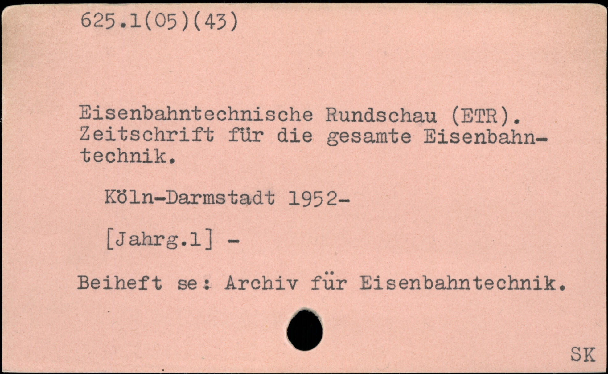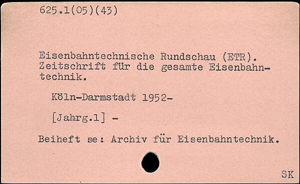 Eisenbahntechnische Rundschau (ETR). Zeitschrift für die gesamte Eisenbahntechnik. Köln-Darmstadt 1952-[Jahrg.l] - Beiheft se: Archiv für Eisenbahntechnik.